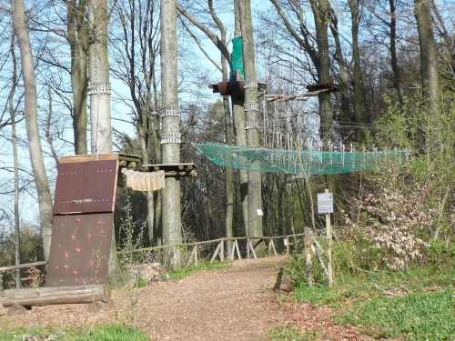 Am Ende der Steigung wartet rechterhand ein Klettergarten, der jetzt noch geschlossen ist. „Gleich gibt’s schwarzen Tee“, rufe ich zwinkernd Martin zu. „Du meinst, was anderes gibt es da nicht an der Fortbildungsstätte der Schwarzen.“ Die CSU-nahe Hanns-Seidel-Stiftung betreibt politische Bildungsarbeit für jedermann.