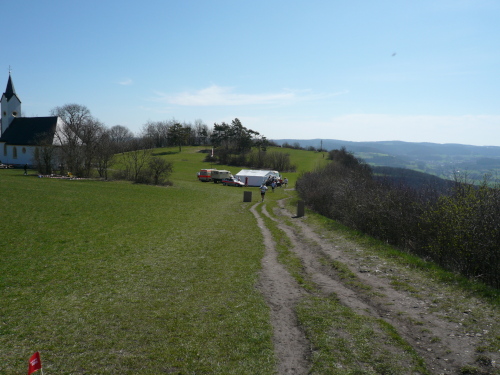 Heute befindet sich , auf dem Plateau des Staffelberges neben der Adelgundiskapelle ein Ausflugslokal, welches aufgrund des herrlichen Wetters sehr gut besucht war. Wir bekamen als Belohnung für unsere Mühen eine Ehrenrunde auf diesem Plateau geschenkt und konnten den Ausblick auf das darunter liegende Maintal und Bad Staffelstein genießen.