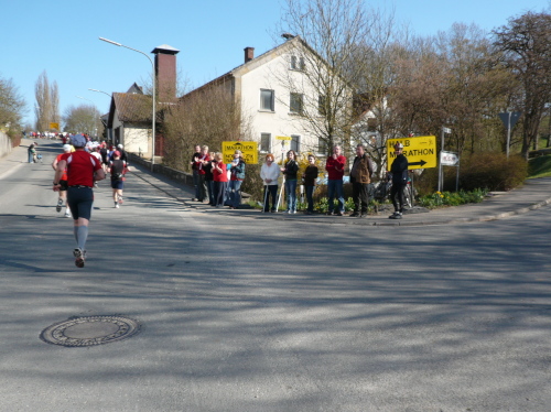 Ich verließ Uetzing und sah wieder den Staffelberg, diesmal von der anderen Seite. Die nächsten Kilometer waren entspannt und ohne nennenswerte Höhenunterschiede. Es ging durch kleinere Ortschaften und hin und wieder überholte ich einige marschierende Läufer, die ich mit einem „Ist nicht mehr weit“ zu motivieren versuchte.