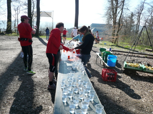 Die Jungs an der Verpflegungsstelle zeigten ganzen Einsatz und machten aus kohlensäurehaltigem Mineralwasser durch unablässiges Flaschenschütteln stilles Wasser. Danke Jungs für diesen Service.