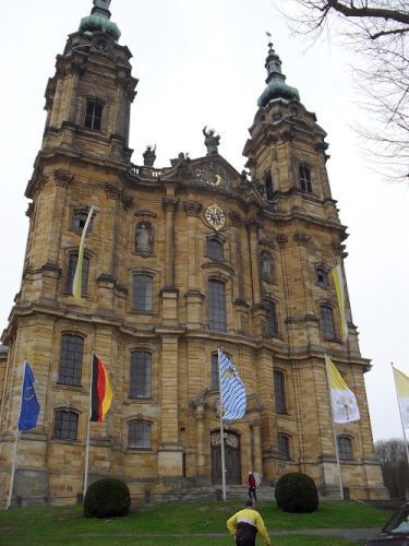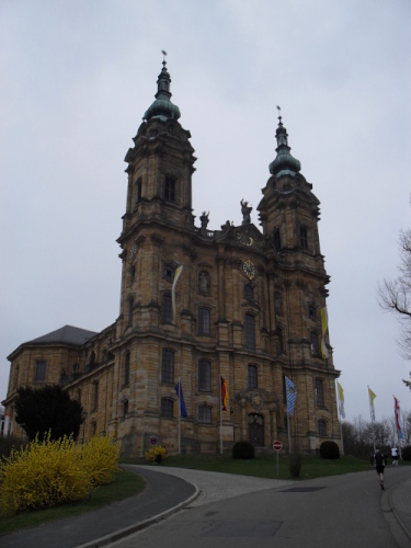Der Anstieg hoch zur Wallfahrtskirche ist am Ende recht happig, aber es ist die Mühsal wert, denn oben erwartet einen ein architektonisches Meisterwerk: Die Basilika Vierzehnheiligen.