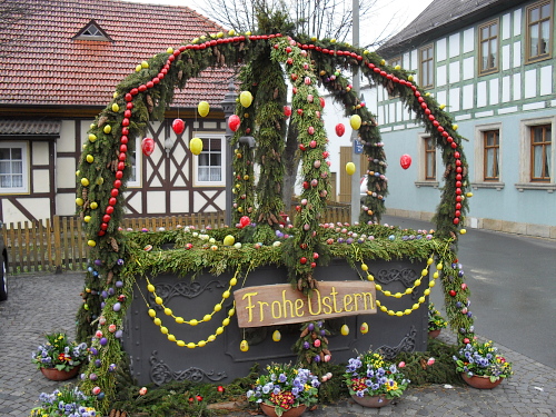 Es geht über Uetzing (km 28) und Stublang (km 30) nach Loffeld (km 32). In Loffeld laufen wir geradeaus weiter über Horsdorf und Eichelsee bis es bei KM 35 über die alte B173 nach Unterzettlitz und bei der Auwaldsiedlung wieder nach Bad Staffelstein zurück geht. Dieser Teil der Strecke ist leider nicht mit dem ersten zu vergleichen, der einem wahrhaft sprachlos macht. Dennoch, es gibt viele schöne Fachwerkhäuser zu sehen und auch immer wieder schöne Ausblicke auf den Staffelberg und auf Kloster Banz. Auch die österlich geschmückten Brunnen sind echt sehenswert.