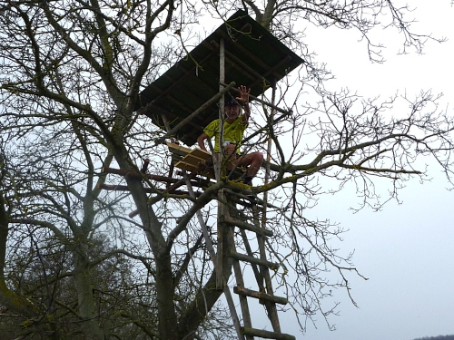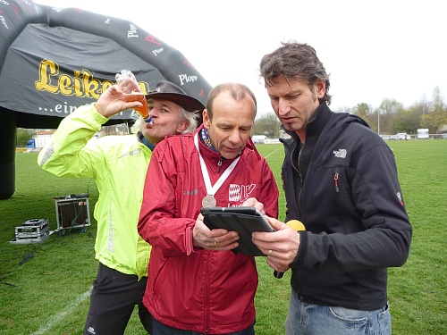 Der Typ mit dem Lederhut, den mutmaßlich kaum einer kennt, lässt keinen Hochsitz aus, seit so ein Ding mal unter seinem dicken Laufschuh zusammengebrochen ist. Die Bilder, die er mir von dem platten Jägerstand zeigte, sind aber auch der Hit. Gut, dieser 4:15 - Bittel geht jetzt an mir vorbei, mitsamt seinem Team. Damit endet für mich und für Euch der Bericht dieser Sightseeingtour, denn ich muss mich ab jetzt quälen. Zu hart war die letzte Woche.Ich werde aber noch eine gute 4:26 hinlegen, was soll`s.