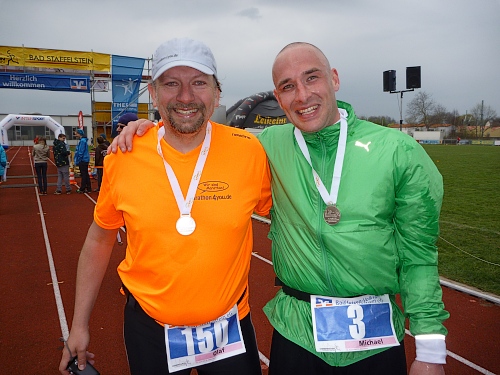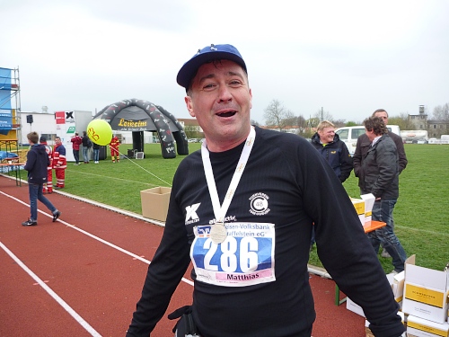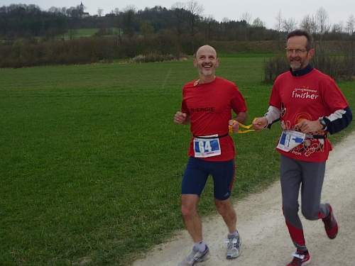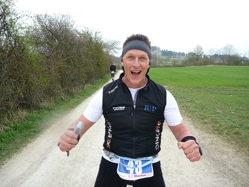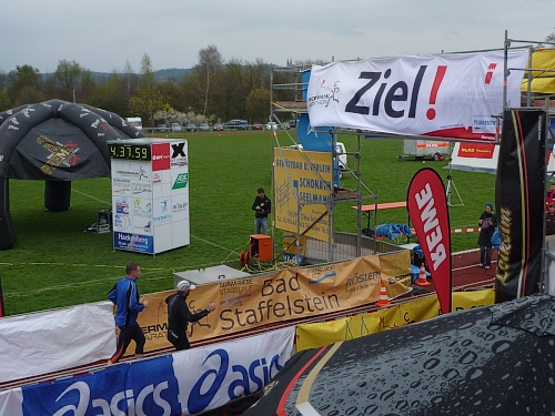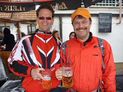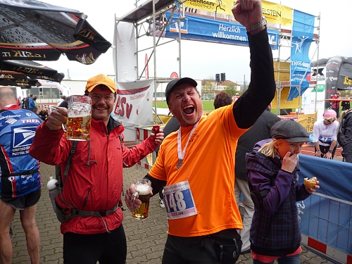 Im Ziel bekomme ich mein lang ersehntes Bier. Jeder Finisher erhält eines, samt Krug. Irgendein Image ist zerstört, meins nicht. Drei m4y-Läufer waren hier, das sagt alles. Ich bin den Berg hianufgeflogen, habe dann abwärts leiden müssen, weil der Strom ausfiel. Nächstes Jahr wünsche ich mir richtig viel Sonne! Der Lauf ist es wert! Und das mit dem verlorenen Schlüpper bei km 7,5 lass ich mir nochmal durch den Kopf gehen, vielleicht sollte ich mal ganz vorne mitlaufen.