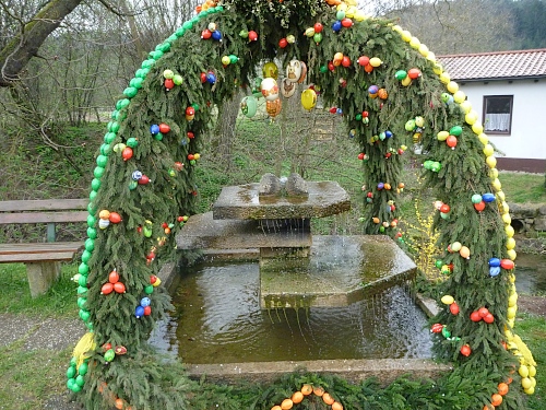 Der Königsbrunnen heilte eine schwerkranke Königstochter. Sie schenkte daraufhin dem Pfarrer einen goldenen Becher, der im 17.Jahrhundert leider bei einem Kirchenraub gestohlen wurde. Das Wasser des Königsbrunnen ist für diese Gegend ungewöhnlich kalkarm, fliesst gleichmäßig , ist eiskalt und lange haltbar, was auf erstklassige Qualität und ein hohes Alter schließen lässt. Der Brunnen ist überragender Mittelpunkt des Dorfes.