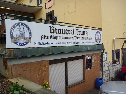 Brauerei Trunk, zartsäuerliches Pilgerbier, mehr Honig als Malz, mehr Wein als Bier. Die Tür steht offen. 2,10 Euro für den halben Liter. Ich laufe weiter, ramponiere mein Image.