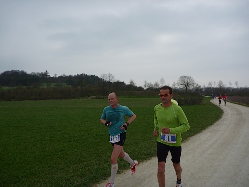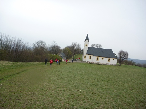 Die mächtigen Glocken treiben mich die steile Rampe hinauf. Würde gerne in die Kirche reinschauen, aber noch habe ich Hoffnung auf eine gute Zielzeit.