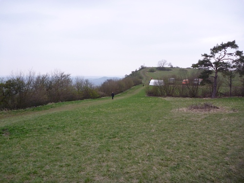 Auf der aderen Seite bis hinunter zum Mergelkalk wird die Fläche durch einen Wanderschäfer, oder bessser, durch seine Schafe beweidet.