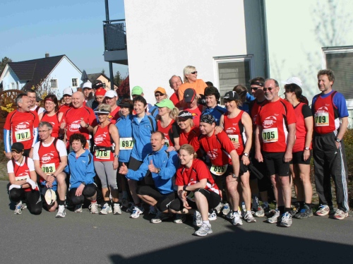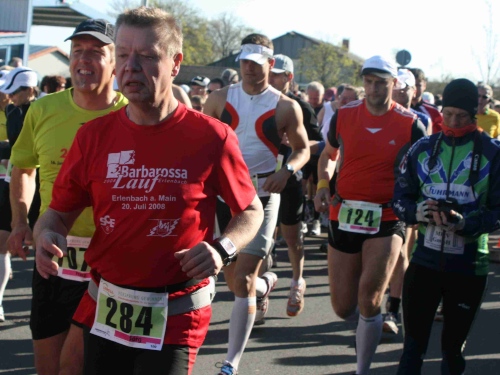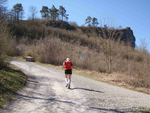 Vom Start aus ging es erst einmal aus Bad Staffelstein hinaus in Richtung Obermain. Dabei dienten die ersten drei Kilometer dem Warmlaufen. Noch führte die Strecke flach durch das Tal nach Unnersdorf. Gelegenheit für ein kleines Pläuschchen mit Reinhold, der wie die meisten Teilnehmer aus der näheren Umgebung stammt.