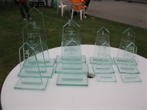 Bei der bald beginnenden Siegerehrung gibt es für ersten drei des Gesamteinlaufes schöne Pokale. Schnellster war heute Marco Schwake vom Brühler TV 1879 in 2:56:44. Bei den Frauen siegte Ute Deters vom TuS Everstein in 3:46:27.