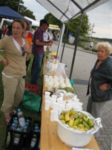 Die Verpflegungsstellen sind auch jetzt noch gut bestückt und die Helfer geben sich alle Mühe, die Wünsche der Läufer zu erfüllen. Neben Wasser und Iso gibt es noch Cola, Bananen- und Melonenstücke.