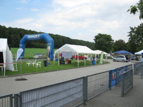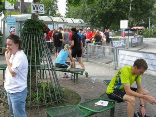 Der Start des Marathonlaufes ist um 15:30 Uhr, so dass ich in aller Ruhe zusammen mit meiner Frau von Oberhausen aus anreisen kann. 150 KM sind es für mich über die Autobahn und über die A30 kommen wir direkt bis zur Abfahrt Bissendorf. Die Parkplätze sind bereits ausgeschildert und von dort aus sind es nur wenige Meter bis zum Schulzentrum an der Werscher Straße. Hier erhalte ich schnell meine Startnummer und über die Straße spannt sich bereits der große Startbogen.