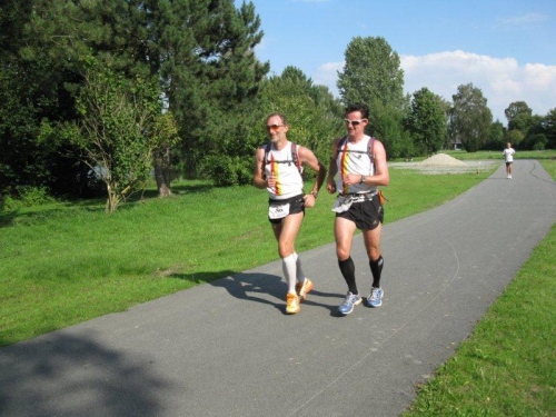 Neben der Marathonstrecke kann man auch einen Halbmarathon laufen. Außerdem gibt es die Möglichkeit als Marathonstaffel (2 x 14 & 2 x 7 KM) oder auf einer 5 bzw. 11 KM Strecke dabei zu sein. Die beiden letzten Streckenlängen werden auch für Walker mit und ohne Stöcke angeboten. Ein breites Angebot also, das dann auch fast 400 Teilnehmer anlockt.