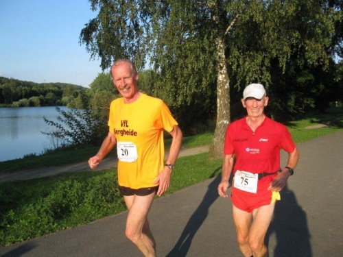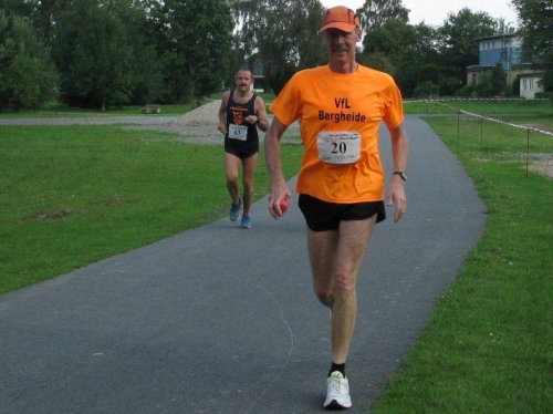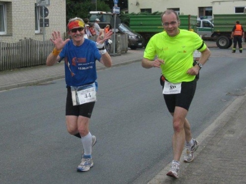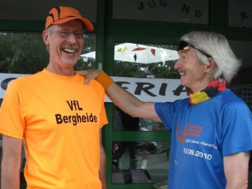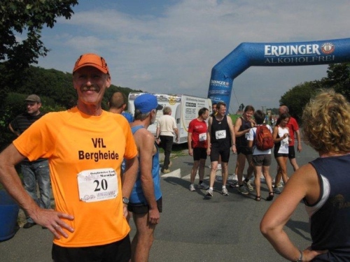 Johann Spieker ist heute genau so dabei wie Heiner Schütte. Heiner gehört zu den zwei Läufern, die hier bei allen sieben Veranstaltungen dabei waren. Die Beiden erhalten hierfür auch eine ganz besondere Urkunde. Insgesamt sind heute 68 Marathonläufer aus nah und fern am Start.