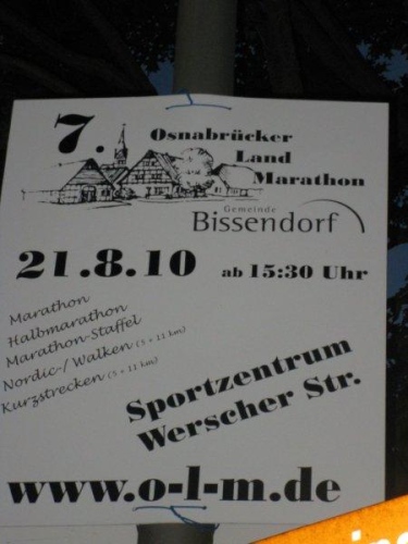Zuerst kommt mir der führende Staffelläufer bereits entgegen, dann geht es wieder aus Bissendorf hinaus. Auf den Wiesen tummeln sich Pferde und Kühe und ich habe einen schönen Blick über die weite Landschaft. Bald erreichen wir die Ortschaft Eistrup. Hier gibt es ein kleines Einkaufszentrum in dessen Nähe eine weitere Verpflegungsstelle auf uns wartet und es geht nun wieder nach Bissendorf zurück.