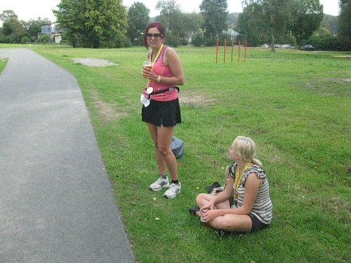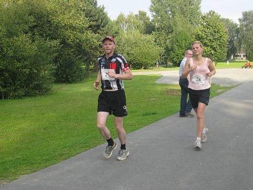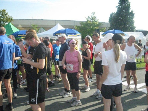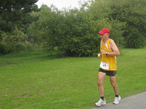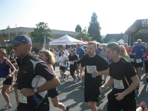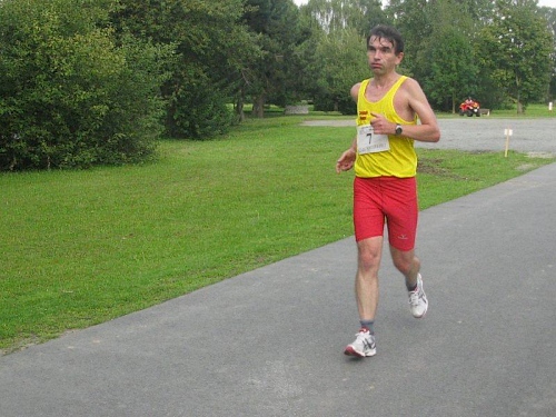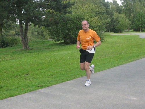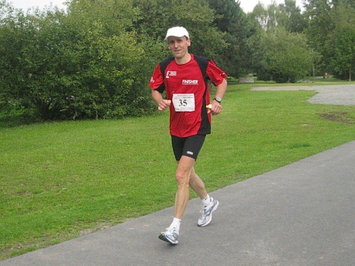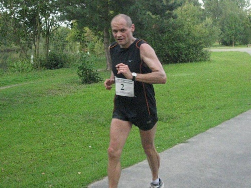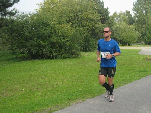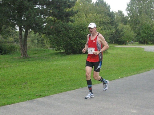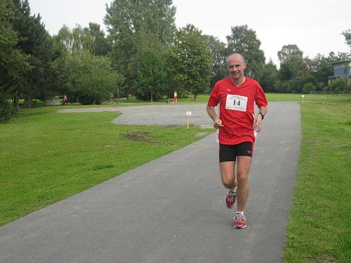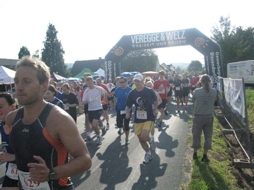 Ich muss mich jetzt für den Start bereit machen und langsam versammeln sich 70 Marathon- und Staffelläufer unter dem Startbogen. Im Feld sind Läufer aus den Niederlanden und selbst aus den USA ist jemand dabei. Auch bis Berlin und Flensburg hat es sich wohl rumgesprochen, dass hier heute ein Marathonlauf stattfindet. Die Strecke hat in etwa die Form einer 8, wobei der erste Teil aus einer 14 km Runde und der zweite Teil aus einer 7 km Runde besteht. Die Schnittstelle der beiden Runden ist nur unwesentlich vom Start/Zielbereich entfernt und gleichzeitig die Wechselstelle der Staffelläufer.