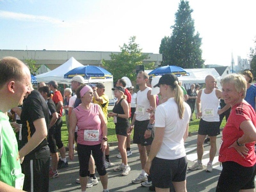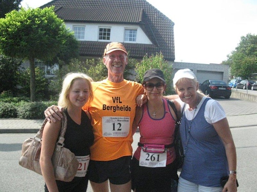 Da der Start des Marathonlaufes erst um 15:30 erfolgt, kann ich mich nochmals ausschlafen und dann nach einem ausgiebigen Frühstück zusammen mit meiner Frau auf den Weg machen. Meine Vereinsfreundinnen Lara und Christina sind auch dabei. Lara braucht noch einen Halbmarathon als Testlauf für Münster und Christina möchte sich erstmals auf der 5 km Strecke testen.