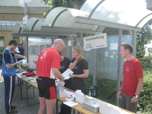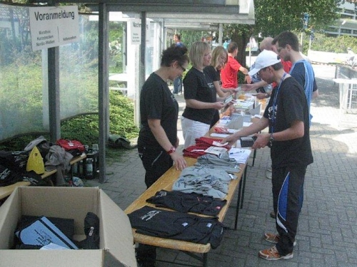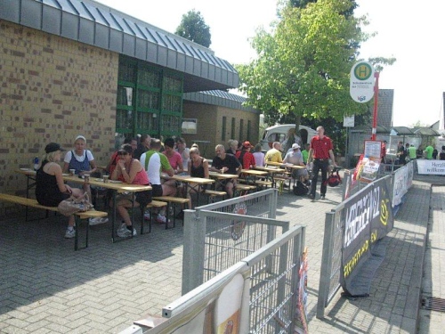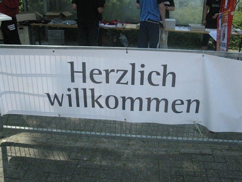150 km über die Autobahn sind es von Oberhausen nach Bissendorf und trotz Ferienwochenende gibt es keinen Stau. So erreichen wir über die A30 planmäßig die Autobahnabfahrt Bissendorf. Von dort sind es nur noch wenige Meter und wir erreichen das schmucke Örtchen. Die Parkplätze sind ausgeschildert und am Schulzentrum ist schon der große Startbogen aufgebaut. Das Schulzentrum an der Werscher Straße ist der Dreh- und Angelpunkt der Laufveranstaltung. Hier kann man sich nachmelden bzw. die Startunterlagen abholen. Die Startgebühr beträgt immer noch 18 Euro für den Marathon und man kann sich problemlos über das Internet anmelden. Bezahlt wird aber erst jetzt vor Ort und im Notfall hätte man sich auch kostenlos wieder abmelden können. Das ist leider nicht bei allen Laufveranstaltungen möglich.