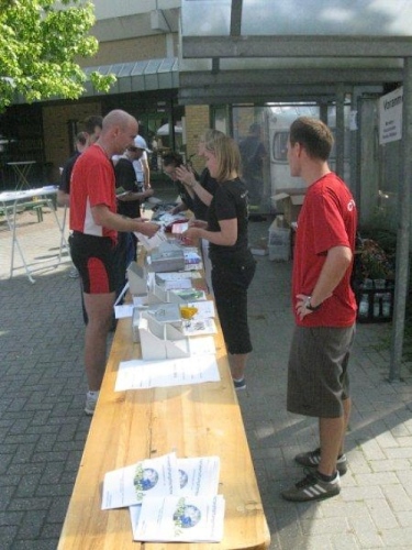 In der Cafeteria wird Kaffee und Kuchen angeboten und in der Turnhalle kann man sich umziehen und später duschen.