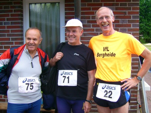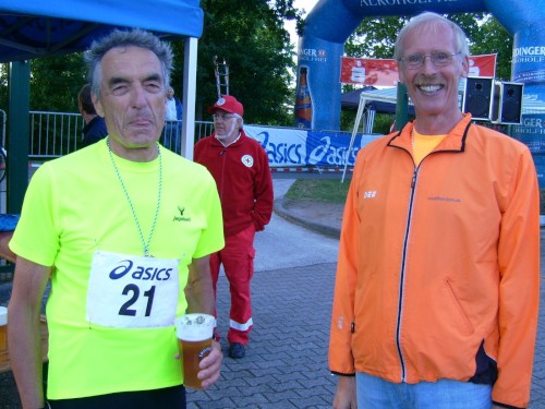 Schon bald habe ich meine Startnummer in den Händen und treffe Volker Berka mit seinem Freund Ernst Güdelhöfer. Die beiden Laufveteranen sind oft zusammen unterwegs und haben sich schon so manches Duell geliefert. Volkers Sohn Frank ist heute beim Jubiläumslauf in Biel dabei.