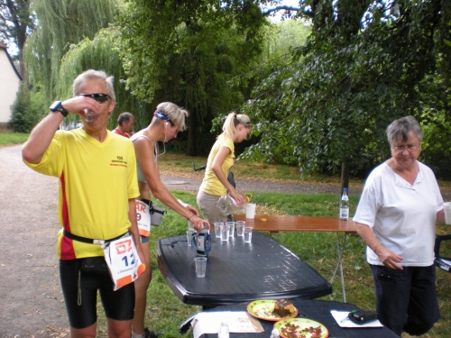 Ehrenrunde durch das Stadion, Zieleinlauf, Zeitmessung (privat gesponsort) perfekt, Duschen, Biergarten, Kleiderbeutel, Rücktransport zum jeweiligen Startort, alles da.