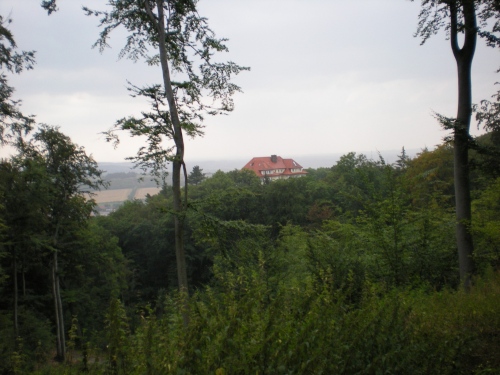 Bald geht es wieder durch den Wald, jetzt wesentlich einfacher. Unten ist die grenzenlose Ebene um Quedlinburg sichtbar. Zum Glück fängt es an zu regnen, denn die letzten 10 Kilometer sind relativ schattenlos, dafür mit Blick auf den Brocken.