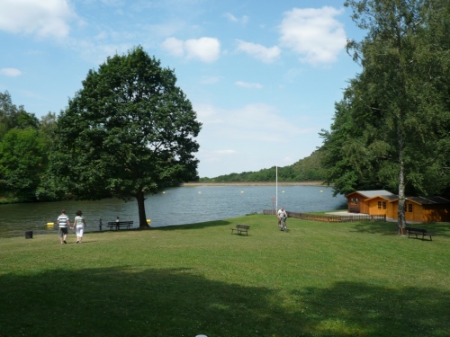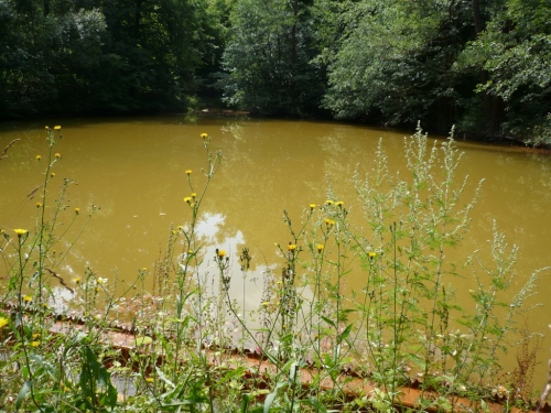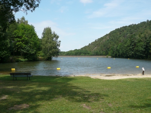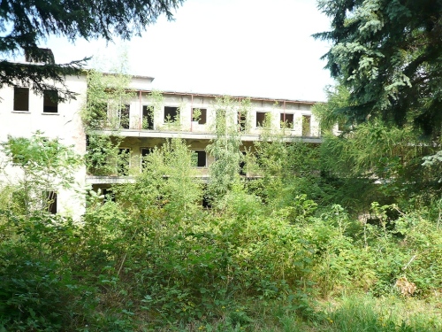 Wir bleiben oberhalb von Rieder im Wald und erreichen nach einem kurzen Bergabstück den Osterteich bei Gernrode. Hier am herrlich gelegenen Badesee im Wald ist die nächste Versorgungsstation. Wir umlaufen den See und es geht mal wieder bergauf über die Osterhöhe und kommen zu einer Ruine aus jüngerer Zeit - das 1952 gebaute FDGB-Ferienheim Fritz Heckert.