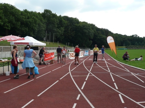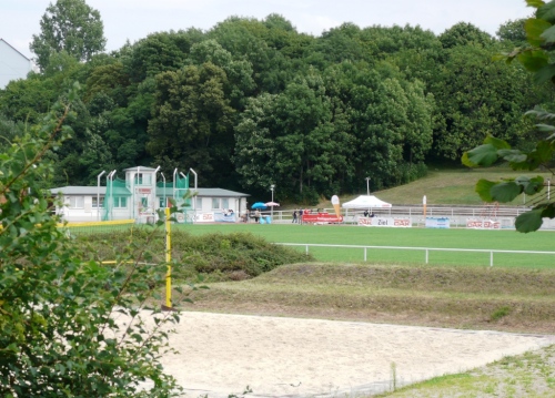 Links bekommen wir die Osterpfalz der drei liudolfingischen Kaiser Otto I, Otto II und Otto III. zu sehen. Der Schlossberg mit Stiftskirche St. Servatii und Stiftsgebäuden überragt die Stadt. Durch einen Zaun sehe ich den Sportplatz „Moorberg“ - unser Ziel. Nach 46,1km bin ich erschöpft aber glücklich dort.