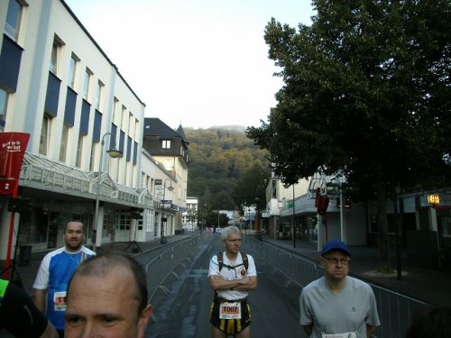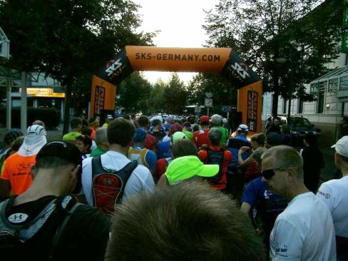 Als Teilnehmer des Ultras darf man als erstes Starten und hat damit auch die besten Parkplätze sicher. 7:30 Uhr – es ist soweit rund 100 Starter haben sich bei 7 Grad Außentemperatur versammelt, um die 68 km unter die Füße zu nehmen. Apropos Füße: Hier wird ein Chipverfahren verwendet, bei dem man sich zwei Schlaufen an den Schuhen befestigen muss, die mit der Startnummer ausgegeben werden, sieht etwas gewöhnungsbedürftig aus und da ich Gamasche trage, musste ich ein paar Sicherheitsnadeln zu Hilfe nehmen, um diese Schlaufen sicher zu befestigen.