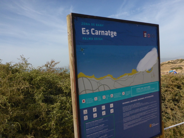 Wir sind mitten im Gemetzel, im Blutbad, so kann man den Namen des Naturschutzgebietes El Carnatge übersetzen. Hier wurden früher Tierkadaver ausgeweidet. Die Haut wurde zum Trocken ausgebreitet, aus den Knochen wurde Seife gekocht. Ironie der Natur, denn die zum Meer abfallenden Felsen sind auch aus Knochen, aus versteinerten Knochen des Pleistozäns, und von hoher wissenschaftlicher Bedeutung.