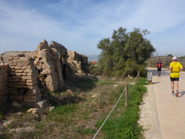 Scharf abgeschnittene Felsen zeugen davon, dass man Zeugnisse der Erde als Baumaterial missbrauchte. Misshandelt werden wir auch. In den zahlreichen Buchten steht die Hitze. Das angeschwemmte, jetzt gärende Seegras versaut die Luft, die uns fehlt. Marathon ist härter, als ich dachte. Jetzt überholt mich auch noch M4Y-Kollege Klaus Klein.