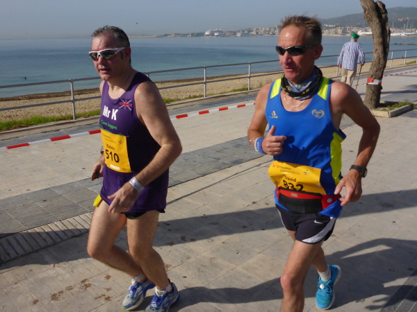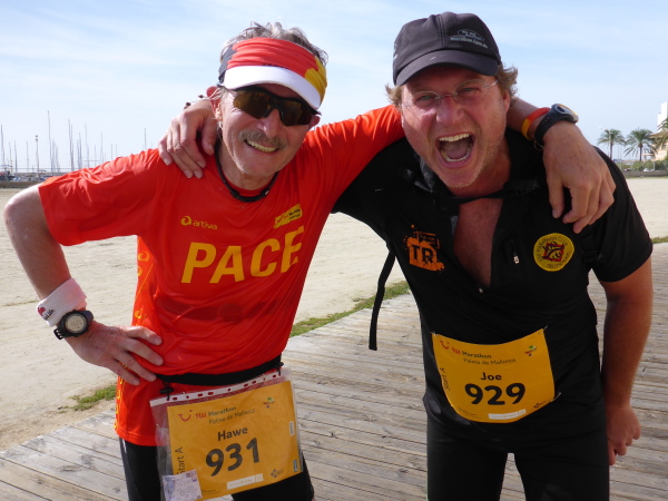 Für mich Anlaß, mich zusammenzureissen. Das Zeitlimit von 6 Stunden ist nicht in Gefahr und meine Haltung gebe ich erst auf der After Race Party auf. Eine besondere Herausforderung ist der wiederholte Abstecher zum Hafen, nachdem man den Zielbogen schon passiert hat. Der Teer ist frisch verlegt und stinkt in der prallen Sonne. Ich wandere wieder, will mich nicht kaput machen auf den letzten Metern. Erst unter dem Zielbogen wird wieder gelaufen. Ich habe einen schweren Kampf. Gründe gibt es genug. Der Leser weiß, welches Programm ich abziehe. Genau ein Jahr nach meiner OP sage ich: Scheiss drauf! Malle ist nur einmal im Jahr! Was mich sehr traurig macht.