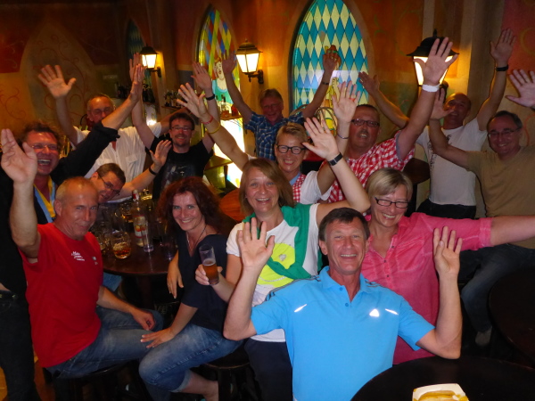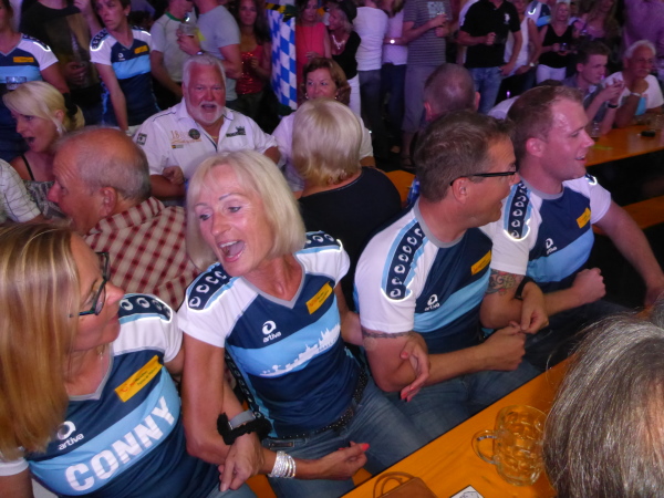 Steigt man aus dem Bus (für Läufer gratis), landet man unweigerlich in der Schinkenstrasse. Beim Bierkönig muss man auf die Uhrzeit achten, man bekommt zu bestimmten Zeiten die doppelte Anzahl von Getränken, als geordert. 10.000 Menschen fasst der Bierkönig. Wir verlassen diesen schönen Ort mit den hübschen Tänzerinnen und gehen zur After Race Party in den Mega Parc.