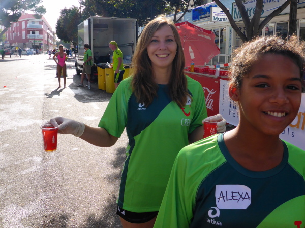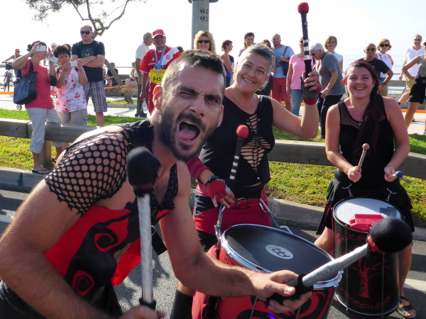Jeder Marathonläufer hat sich vorgenommen, ab hier richtig Gas zu geben. Doch nach den angenehm schattigen Passagen in der Altstadt trifft uns nun die volle Wucht der Sonne. Man sieht erste Geher. Gehen ist ansteckend wie Ebola. Ein bisschen Heilung versprechen die VP´s. Dort gibt es Wasserflaschen, Iso, Bananen Äpfel und hübsche Tänzerinnen.