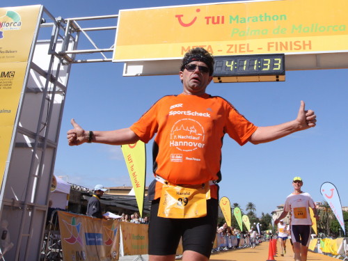 Wo ist Ulf? Der müsste doch von seinem „Halben“ längst hier sein. „Den hab ich noch bei km 24 gesehen“, bekomme ich Bescheid. Km 24? Ein halber Marathon hat doch auch auf Mallorca nur 21 km. Er wird halt irgendwo in der Sonne liegen. Bis Inga ins Ziel kommt, ist ja noch Zeit.