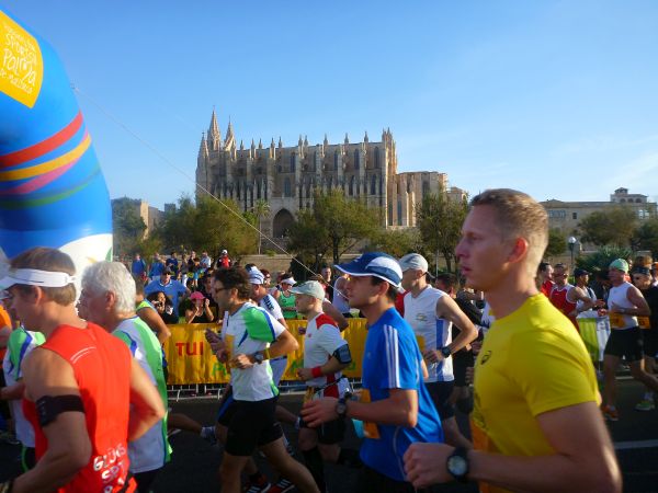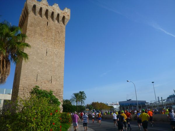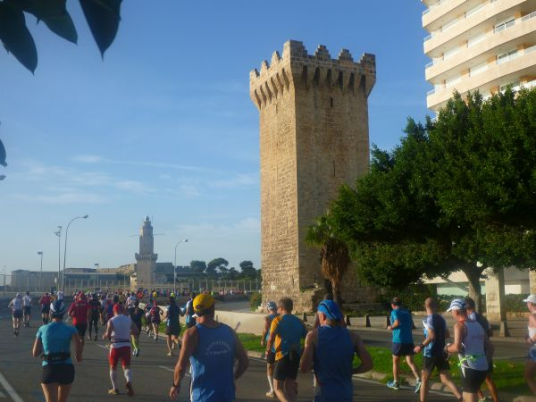 Der Startbereich ist eine Wucht. Links die mächtige Kathedrale und rechts das Meer. Das hat was und steigert meine Vorfreude. Die wird mit der zu laufenden Strecke weiter gesteigert. Zunächst geht es Richtung Leuchtturm Torre de Pelaires. Hier wird nach 6 Km gewendet und es geht auf gleicher Strecke am Hafen entlang zurück. Es folgt eine Runde durch die Altstadt von Palma, abbiegen nach Arenal und direkt an der Küste zurück zum Ziel unterhalb der Kathedrale.