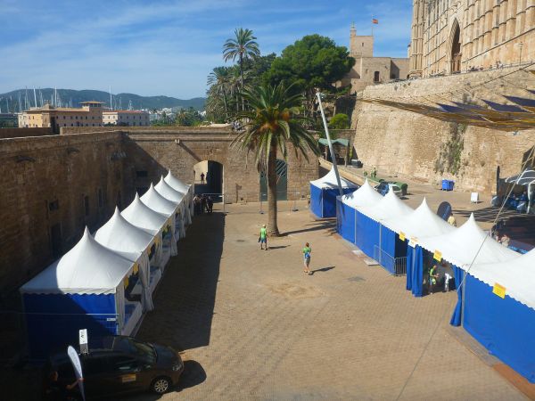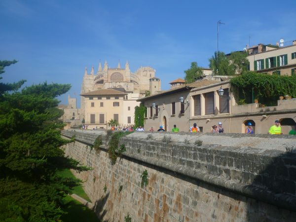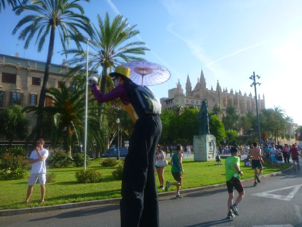 Richtig Stimmung kommt auf, als wir mit Blick auf Palast und La Seu von der Küstenstraße Richtung Altstadt abbiegen. Die bekannte Einkaufsstraße Ramblas nimmt uns auf. Es geht wieder leicht aufwärts. Eine Verpflegung ist am Platz Rei Juan Carlesi.