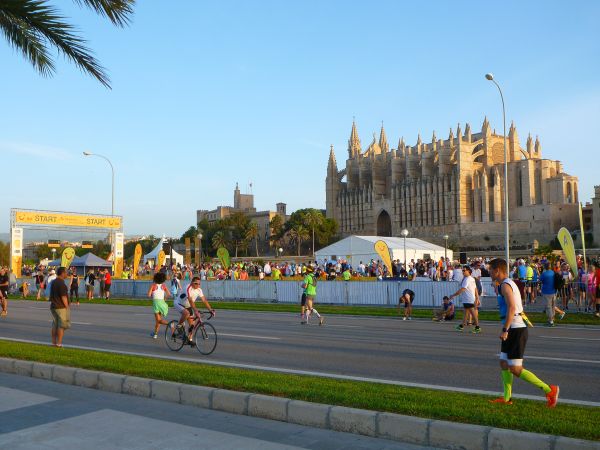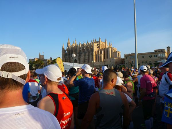… denke ich mir, als wir am Sonntag früh nach Palma fahren. Wir parken am Rande der Altstadt und gehen zum Parc de la Mar. Es heißt Wechselkleidung abgeben und gute Stimmung vor dem Lauf aufnehmen. Man merkt, hier sind viele, die wie ich einen Marathon mit einem Urlaub in schöner Umgebung verbinden wollen. Viele Deutsche sind am Start, aber auch viele andere Nationen sind vertreten. Ich sehe Briten, Amerikaner, Polen, Dänen, Tschechen usw.