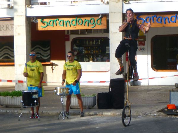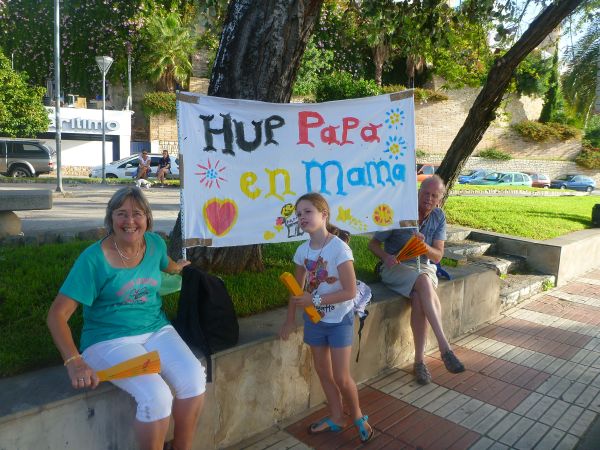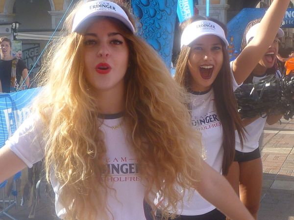 Ich komme unfallfrei durch die Passage. Es folgt der Plaza Major. Cheerleader links und rechts erfreuen das mitlaufende Auge. Das Ohr erfreut nach Km 16 eine Geigerin gegenüber dem Rathaus.