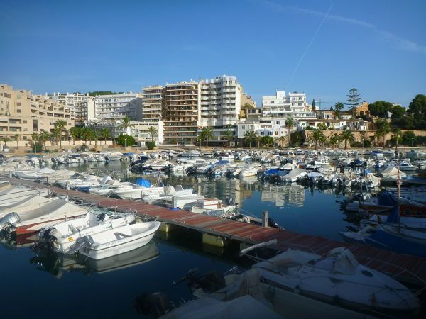 Es geht herunter. Links ist eine Art Militärmuseum, einige dicke Kanonen grüßen von oben herab. Vor uns taucht ein Riesenkreuzfahrtschiff auf. Mit Blick auf dieses und drei mächtige Kräne erreichen wir einen Wendepunkt und es geht zurück. Wieder vorbei an Porto Pi, am Hafen mit der Millionenflotte und den Hotels. Jetzt ist hier schon mehr los.
