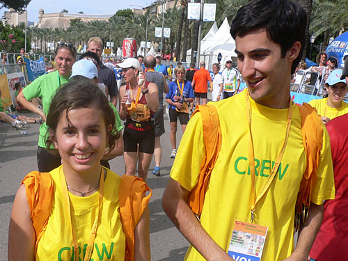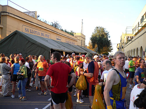 Am Sonntagmorgen herrscht schon früh reges Treiben auf dem Passeig de Sagrera, der breiten Küstenstraße. Letzte Gelegenheit für Kurzentschlossene, sich eine Startnummer für eines der drei Rennen zu sichern. Gleich nebenan gibt man die Kleiderbeutel ab. Die laute Musik wird in kurzen Abständen von Durchsagen unterbrochen, immer in spanisch, deutsch und englisch.