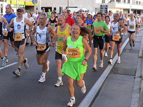 Der wellige Kurs und die Hitze macht etlichen arg zu schaffen. Die Geher sind fast in der Überzahl. Wieder einmal freue ich mich über meine kluge Einteilung. Wenn nicht Unvorhergesehenes passiert, bin ich nach fast zeitgleichen Streckenhälften nach 4 ½ Stunden im Ziel.