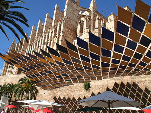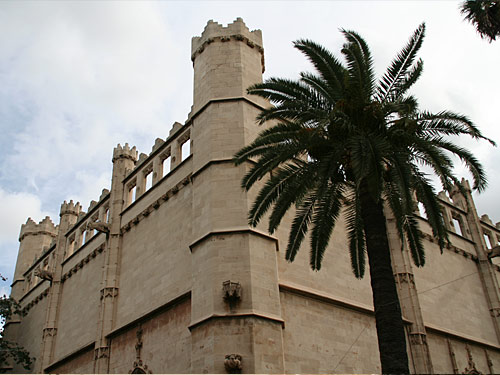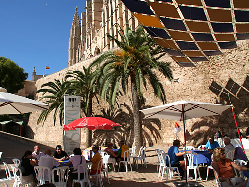 Rechts geht es jetzt ungefähr 200 Meter in eine Mole zu einem Wendepunkt. Das macht Sinn, denn auf dem Rückweg hat man einen Blick auf die Kathedrale La Seu, der einem fast den Atem raubt. Als König Jaume I. Mallorca von 400jähriger maurischer Herrschaft befreite, ließ er 1230 an der Stelle der arabischen Hauptmoschee mit dem Bau der Kathedrale beginnen. Erst 1576 wurde sie fertig gestellt.