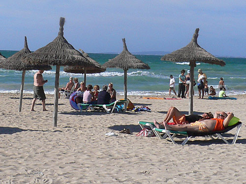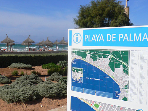Jetzt laufen wir parallel zur breiten Straße, die zum Flughafen führt. Praktisch in Minutenabständen heben die Flieger ab. Langsam nimmt die Kneipendichte zu. Imbißstuben, Cafés und Bars wechseln sich ab. Aber die Lokale sind meist leer, die Saison ist vorbei. Kenner nutzen diese Zeit und genießen sommerliche Temperaturen und relative Ruhe zu angenehmen Nachsaisonpreisen.
