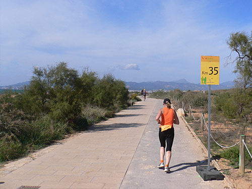 Die Mallorca-Reise von Marathon-Siegerin Birgit Schönherr-Hölscher (3:10:08) war ein Geschenk ihres Mannes als Belohnung und zur Erholung von einem 100 km-Lauf in Japan. Nie hat sie damit gerechnet, hier auf dem Treppchen zu landen. Als sie dann aber die Spitzte übernimmt, erkennt sie ihre Chance und verteidigt ihre Position bis ins Ziel.