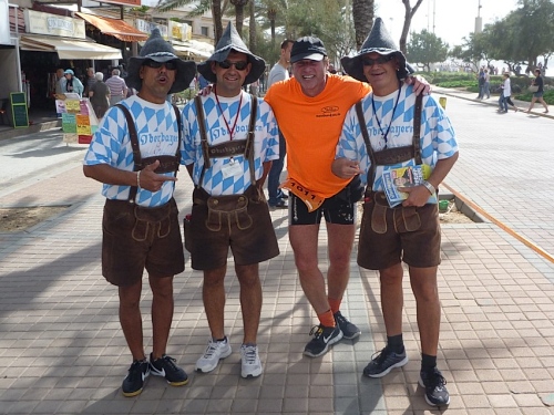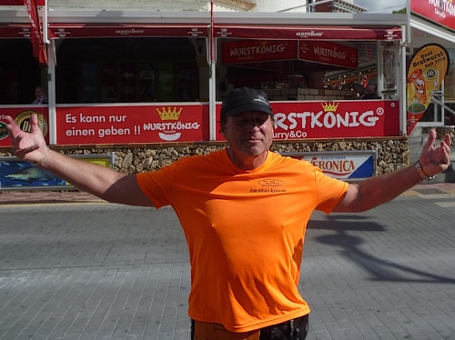 In der Schinkenstrasse sind die Rolläden heruntergelassen. Oder ist es die Bierstrasse? Ich bin das erste Mal auf Malle. Enttäuschend der Anblick hier für mich, habe nicht das Gefühl, etwas verpasst zu haben. Wie Tom Gerhardt mitten im Sangriakessel hocken, vor sich zwei Knackärsche... das ist doch Malle! Aber es gibt nur Wasser, Iso, Äpfel und Bananen. „Voll normaaal“, wie Tom dem Mario immer entgegenbrüllt. Selbst die drei Spanier in Lederhose und Oberbayern-Shirt sind stocknüchtern.