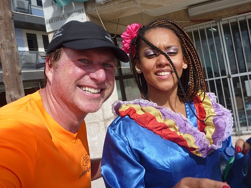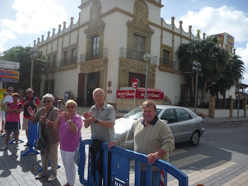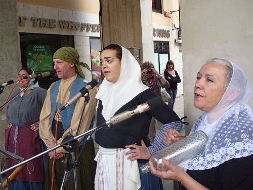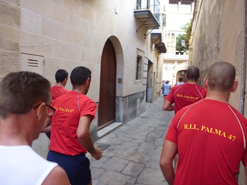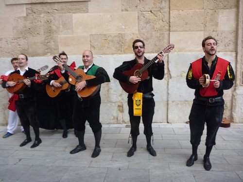 Steinphinxen bewachen den Eingang zur Prachtstrasse Es Born, der Name geht auf die Ritterturniere zurück. Hausnumer 27 beachten: Barockgarten von 1763. Oben am Placa de la Reina am sogenannten Schildkrötenobelisken gelingt mir ein Foto mit der Tänzertruppe, aber ehe ich die alle beisammen hatte…die scheinen alle Urlaub zu haben.