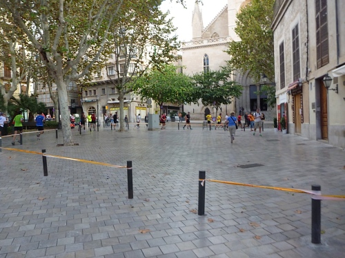 Die Rambla des Ducs hinauf (benannt nach der Tochter vom König und ihrem Gemahl, die sich während der olympischen Spiele in Atlanta kennengelernt haben). 1403 gab es hier eine grausame Überflutung mit tausend Toten, daraufhin wurde der Fluss an den Passeig Mallorca umgelegt.