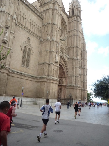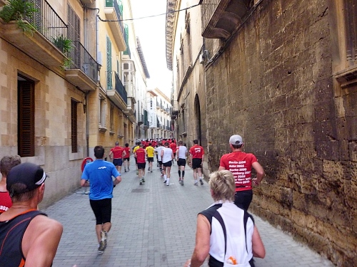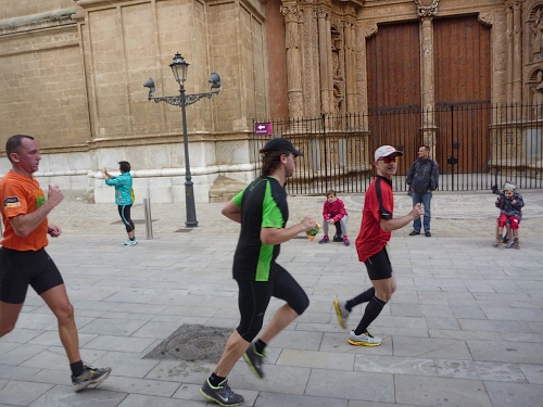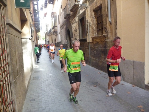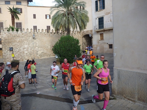 Bei km 11 geht es vorbei an der Kathedrale hinein in die Altstadt, vorbei an trutzigen Bürger-und Adelspalästen. Durch manche Eisengitter kann man einen Blick hinein in die Patios mit ihren weit geschwungenen Sandsteinbögen werfen. Tipp: in der Woche um Frohnleichnam sind die meisten Paläste öffentlich zugänglich.
