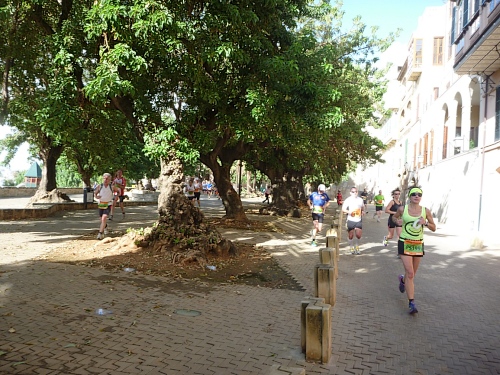 Ein Jugendstilgebäude bei km 13 reisst mich vom Hocker. Das Läuferfeld ist eng, ich habe kaum Zeit und Platz ein Foto zu schiessen. Es ist das Gran Hotel (1901-1903), beherbergt nun eine Kunstgalerie.